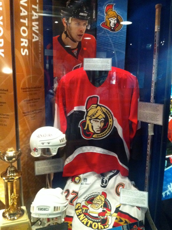 For starters, I must say there is a lot more Sens stuff in the Hall than I expected. I’m not saying this because I was expecting some Toronto bias but rather because uhhhh the team hasn’t done a ton in its young history. I have often breathed a sigh of relief that Ottawa’s clumsy as all shit PR department doesn’t make much mention of how the team won several Stanley cups before Penicillin was invented (not joking). I did think it was cool though that the HHOF commemorated their achievements. I mean, the Canadiens go to TOWN on that shit so why not? Cups for all.