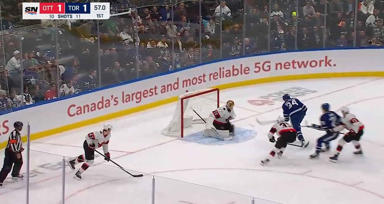 Joseph and Stützle absolutely own the Leafs below the net and it’s Jacob Chychrun who finishes the play in the high slot. It’s Mathieu Joseph’s 7th assist of the season. Can you believe we nearly traded this guy to sign Pinto? He’s gone from worst contract on the team to biggest bargain on the team in about 10 games. Mathieu Joseph: Presented by Bettissimo 3-2 Sens